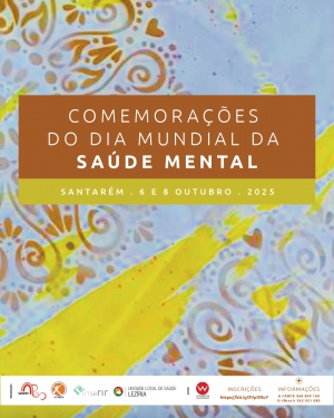 O Dia Mundial da Saúde Mental é assinalado, em Santarém, nos dias 6 e 8 de outubro, com diversas iniciativas que vão decorrer no W Shopping, na Escola Superior de Saúde de Santarém e na Sala de Leitura Bernardo Santareno. A participação nas iniciativas é livre e gratuita, embora a sessão da tarde de dia 8 seja sujeita a inscrição obrigatória, tendo em conta que se trata de uma sessão de Formação, de curta duração, certificada para professores.